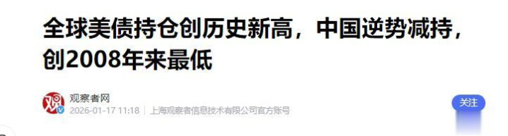 根据美方公布的数据显示,中国在去年11月份的时候,又减持了61亿美元的美国国债,总持仓降到六千八百亿美元左右。而同一时期,全球持有美债的总量,不仅没降,反而创了历史新高,突破9.36万亿美元,像一些欧洲国家、资源出口国都在增持,那为什么大家都在买,我们却在持续卖?